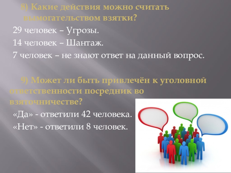 Слайд 40 8) Какие действия можно считать вымогательством взятки?