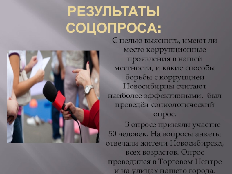 нашей местности, и какие способы борьбы с коррупцией Новосибирцы считают наиболее эффективными, был проведён социологический опрос.