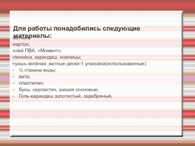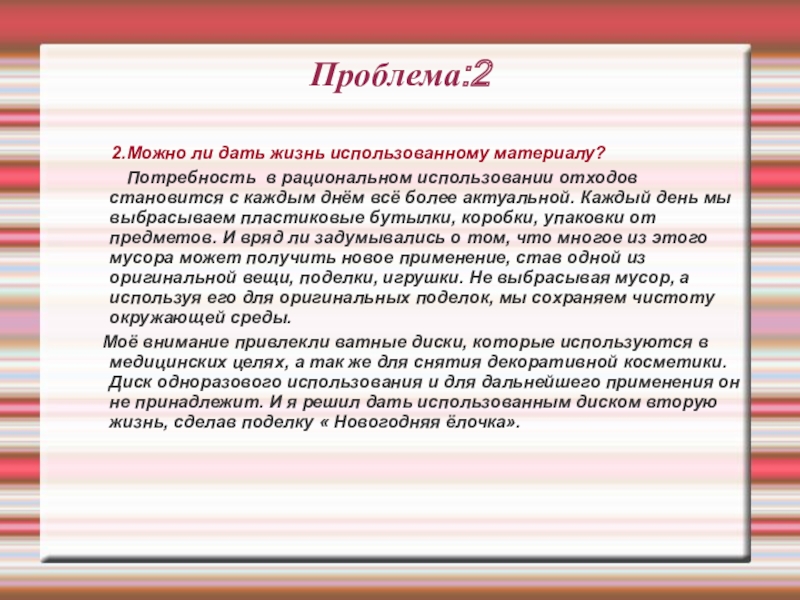 Моё внимание привлекли ватные диски, которые используются в медицинских целях, а так же для снятия декоративной косметики. Диск одноразового использования и для дальнейшего применения он не принадлежит. И я решил дать использованным диском вторую жизнь, сделав поделку « Новогодняя ёлочка».