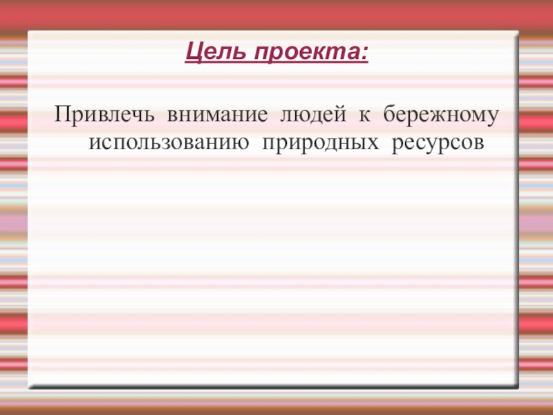 Привлечь внимание людей к бережному использованию природных ресурсов