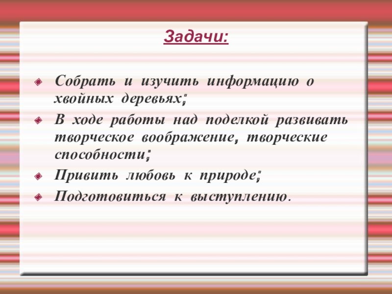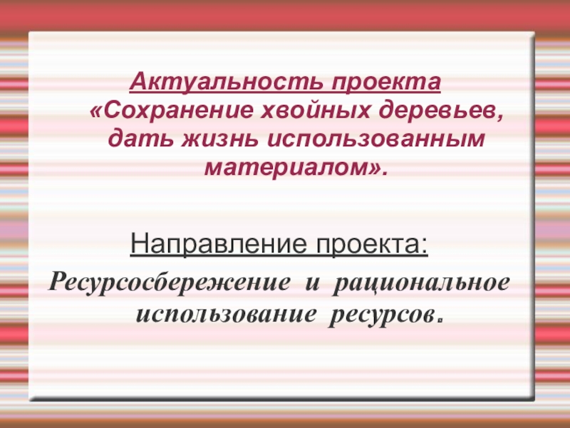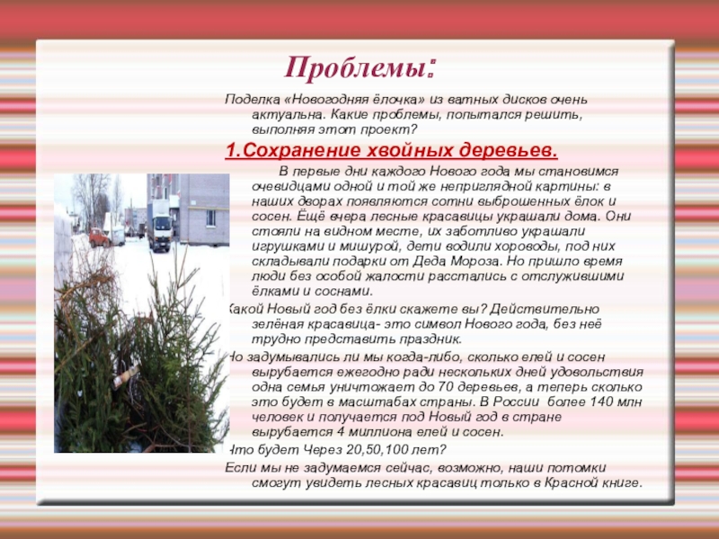 «Сохранение хвойных деревьев, дать жизнь использованным материалом».