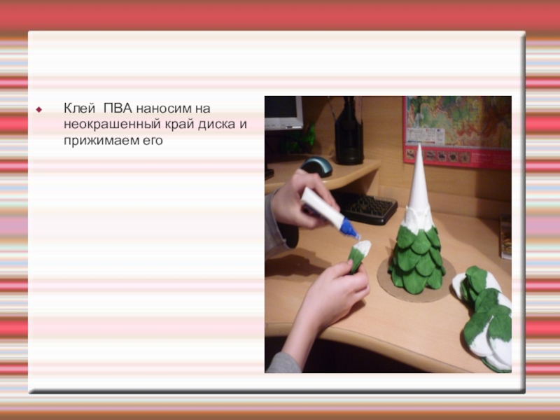 Клей ПВА наносим на неокрашенный край диска и прижимаем его