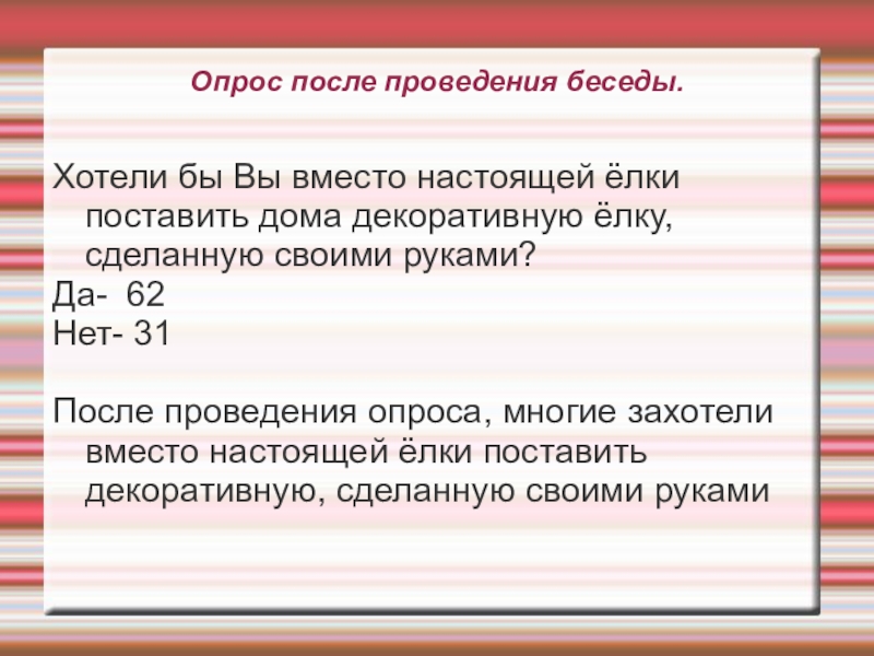 После проведения опроса, многие захотели вместо настоящей ёлки поставить декоративную, сделанную своими руками