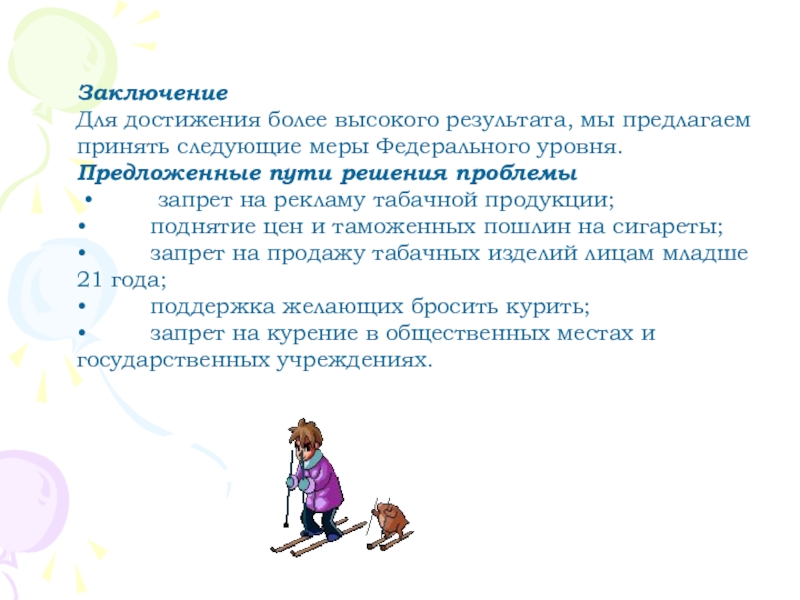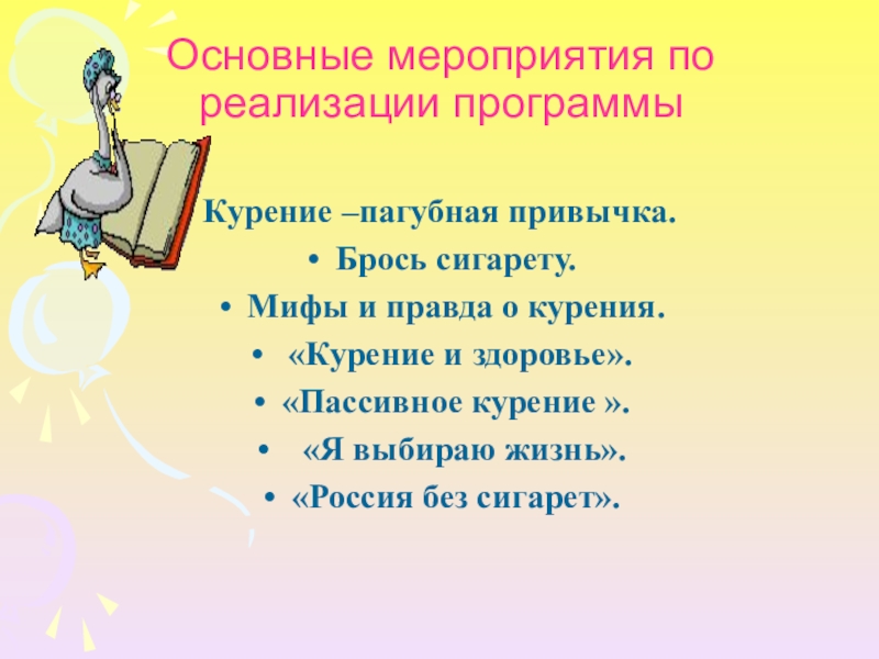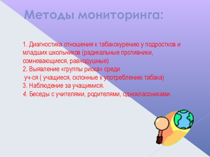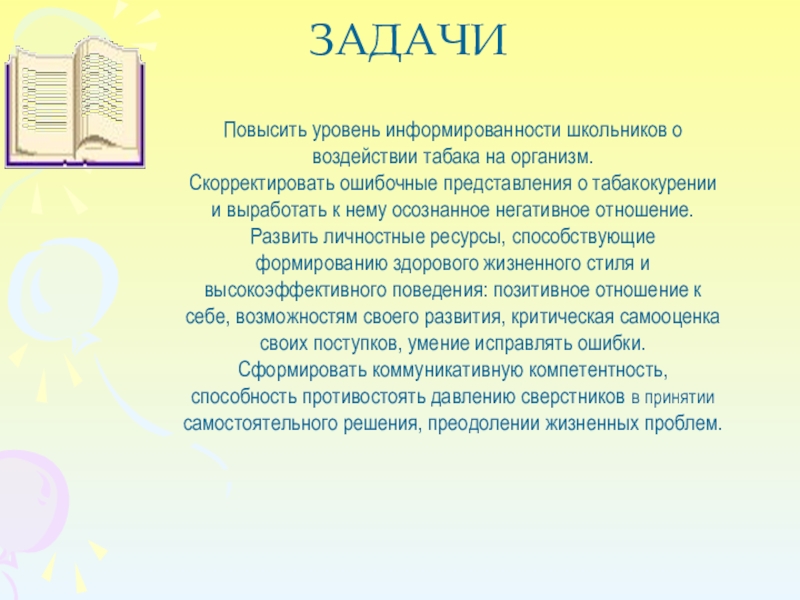 . развивать у ребят осознанное неприятие табака как одного из способов воздействия на личность.