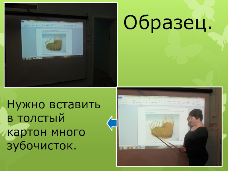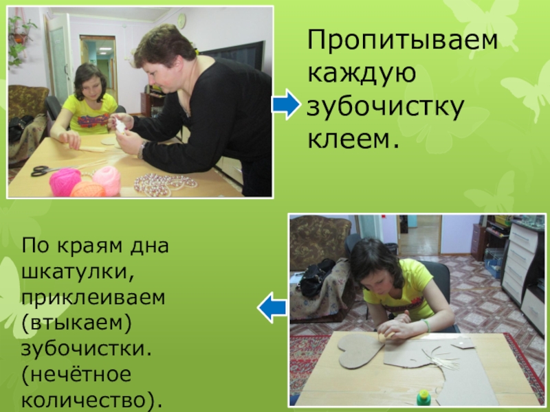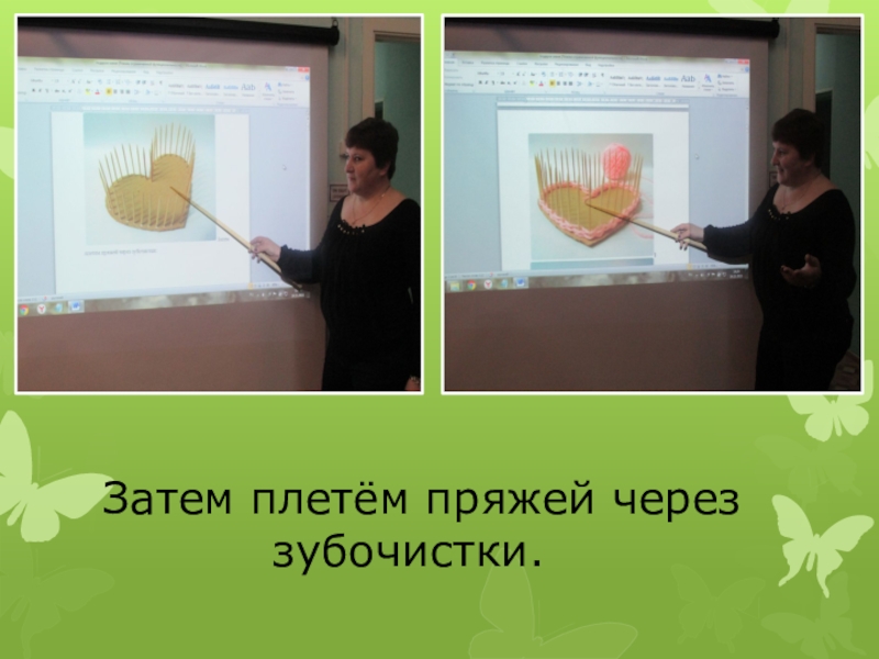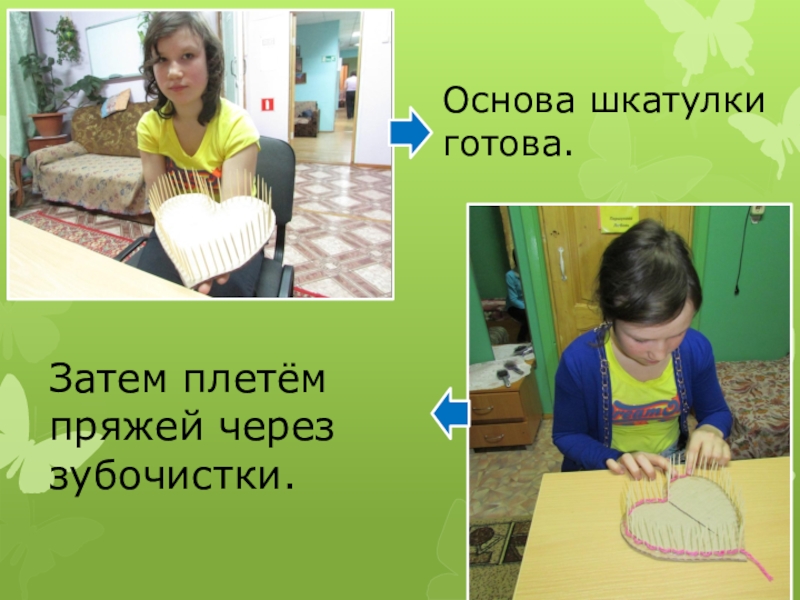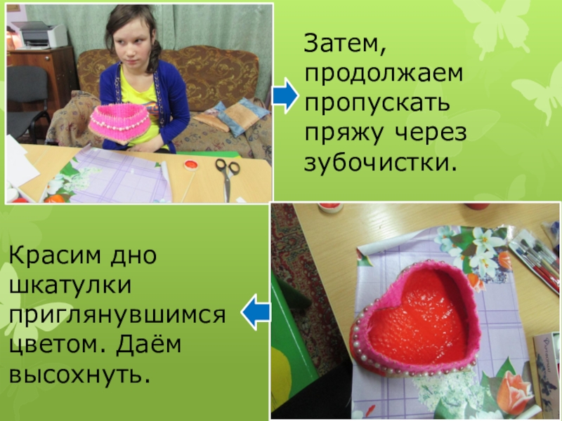 Слайд 10Затем, продолжаем пропускать пряжу через зубочистки.