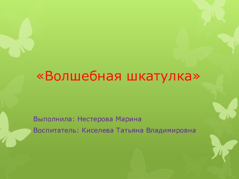 «Волшебная шкатулка»Выполнила: Нестерова МаринаВоспитатель: Киселева Татьяна Владимировна