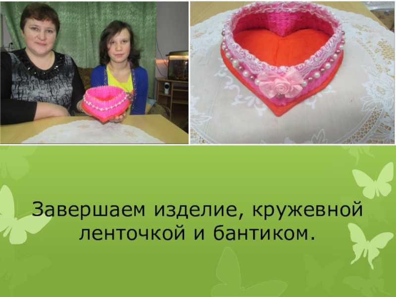 Слайд 11Завершаем изделие, кружевной ленточкой и бантиком.
