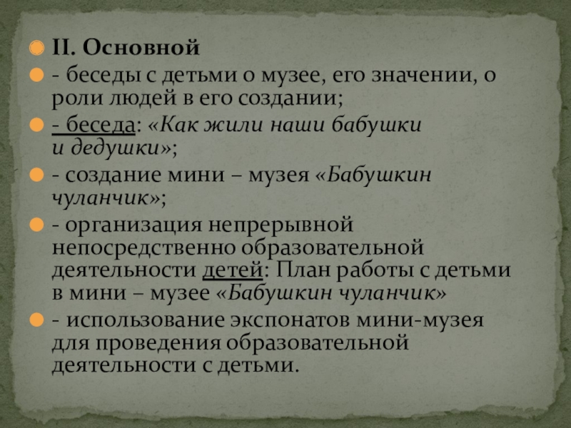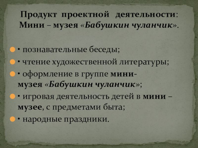 Мини – музея «Бабушкин чуланчик».