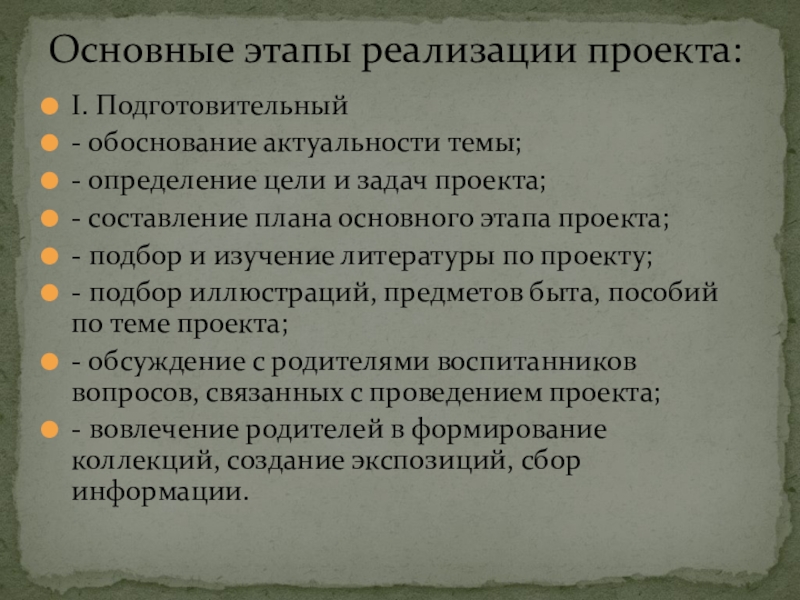 Основные этапы реализации проекта: