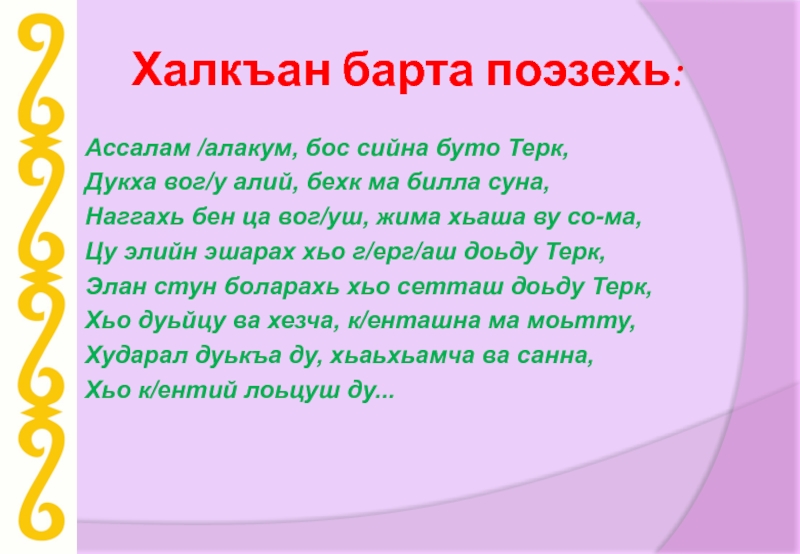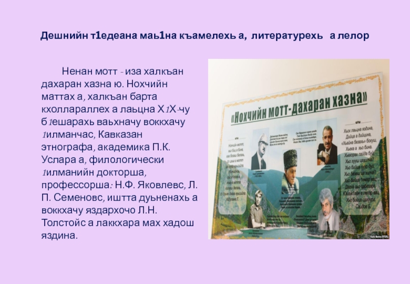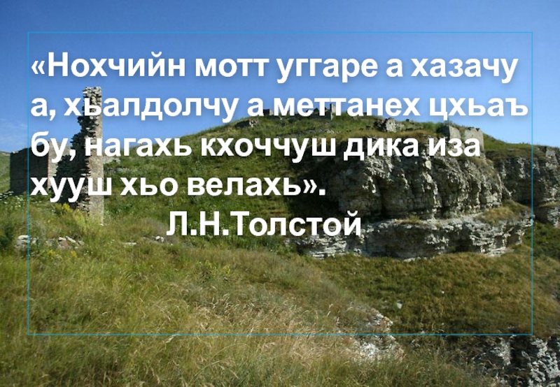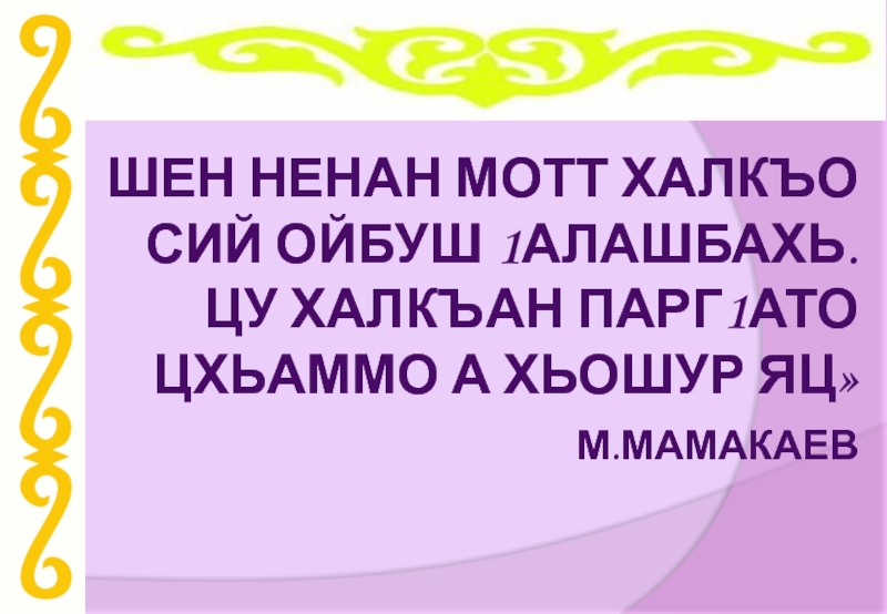 Слайд 11«Нохчийн мотт уггаре а хазачу а, хьалдолчу а меттанех цхьаъ бу,