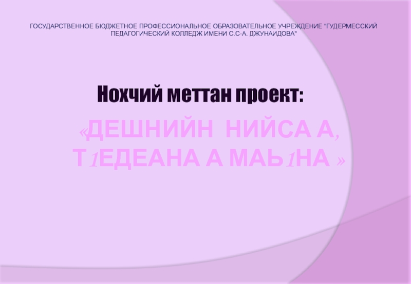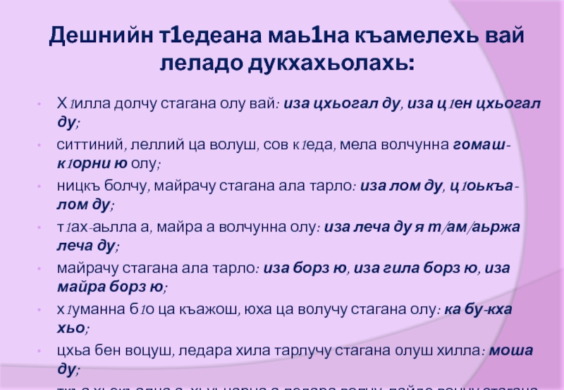 Слайд 1«ДЕШНИЙН НИЙСА А, Т1ЕДЕАНА А МАЬ1НА »