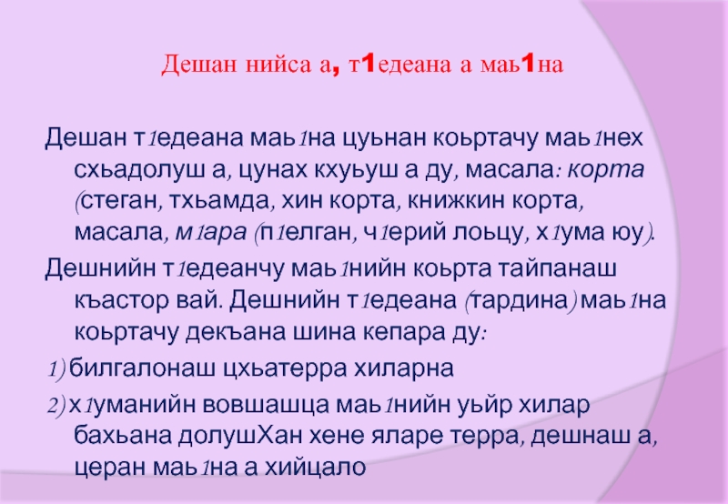 Слайд 9Дешан нийса а, т1едеана а маь1на