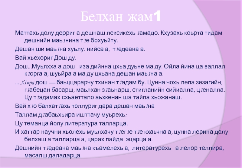 Слайд 10Дешнийн т1едеана маь1на къамелехь а, литературехь а лелор