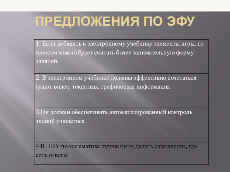 Слайд 14ПРЕДЛОЖЕНИЯ ПО ЭФУ