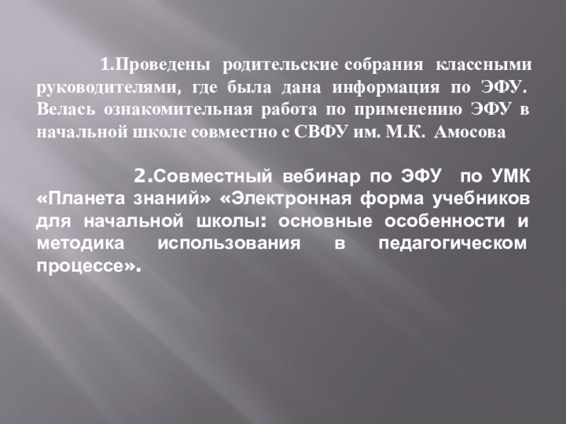 где была дана информация по ЭФУ. Велась ознакомительная работа по применению ЭФУ в начальной школе совместно с СВФУ им. М.К. Амосова