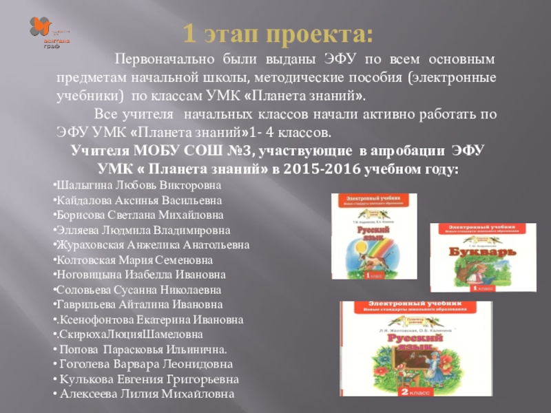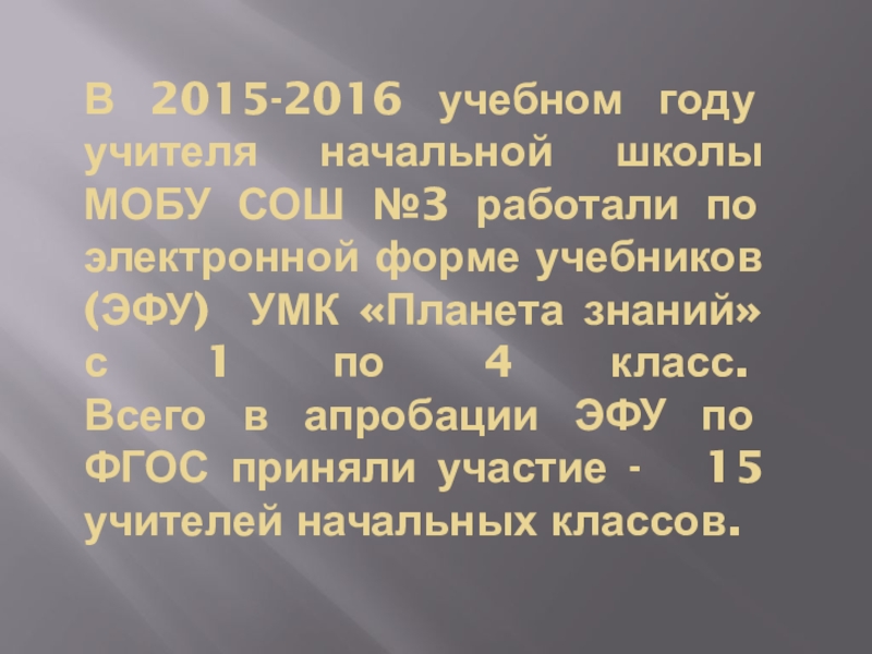 Учителя МОБУ СОШ №3, участвующие в апробации ЭФУ УМК « Планета знаний» в 2015-2016 учебном году: