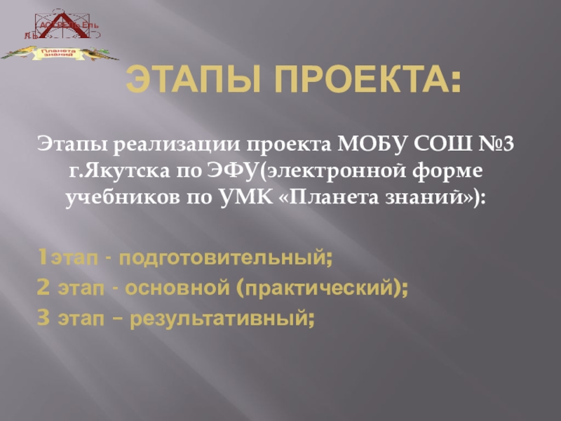 Этапы реализации проекта МОБУ СОШ №3 г.Якутска по ЭФУ(электронной форме