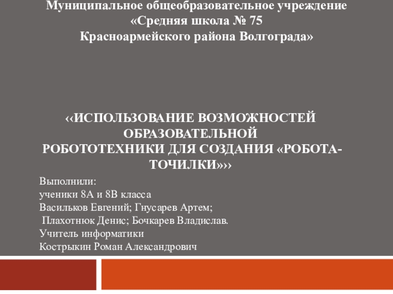 Это сайт презентаций, где можно хранить и обмениваться своими презентациями, докладами, проектами, шаблонами в формате PowerPoint с другими пользователями. Мы помогаем школьникам, студентам, учителям, преподавателям хранить и обмениваться учебными материалами.