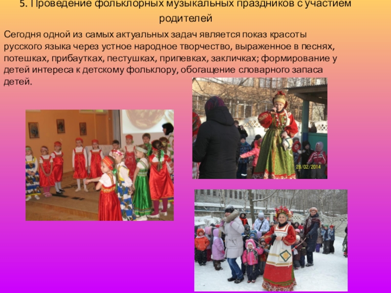 Слайд 315. Проведение фольклорных музыкальных праздников с участием родителей