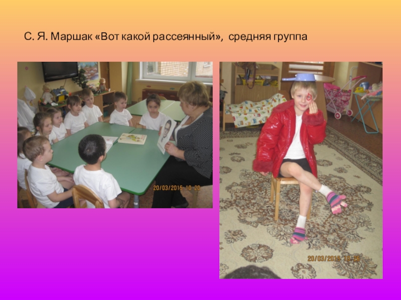 Слайд 28С. Я. Маршак «Вот какой рассеянный», средняя группа