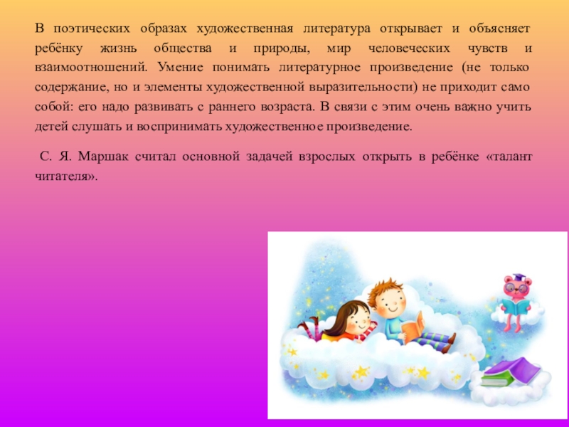 С. Я. Маршак считал основной задачей взрослых открыть в ребёнке «талант читателя».