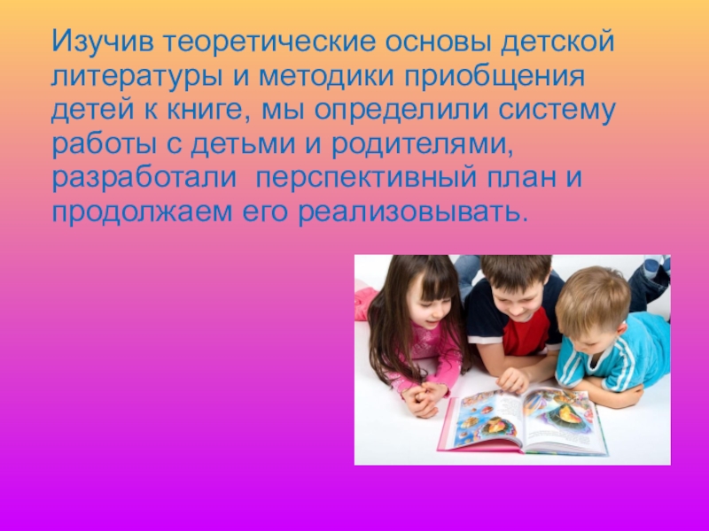 Слайд 11Изучив теоретические основы детской литературы и методики приобщения детей к книге,