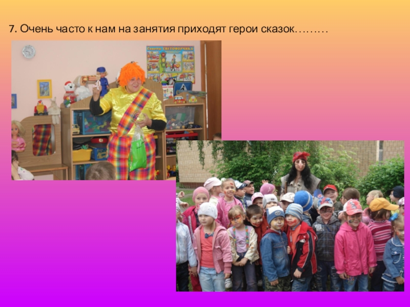 Слайд 337. Очень часто к нам на занятия приходят герои сказок………