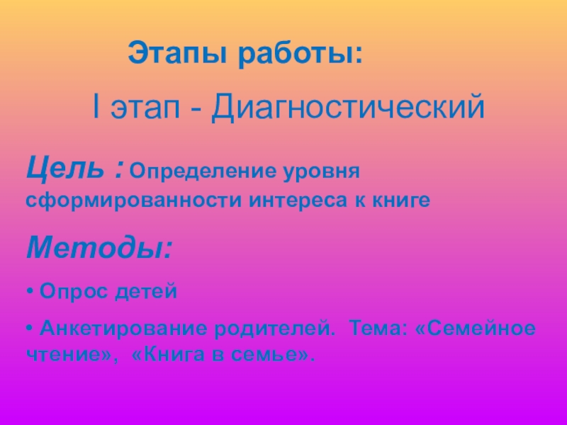 Слайд 7Цель : Определение уровня сформированности интереса к книге