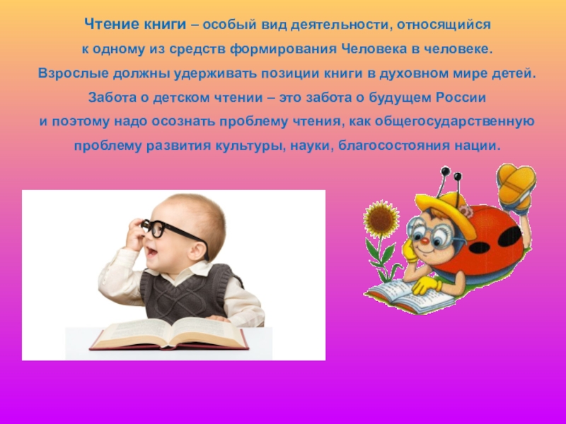Слайд 2Чтение книги – особый вид деятельности, относящийся