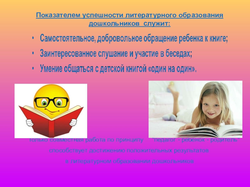 Слайд 50Показателем успешности литературного образования дошкольников служит: