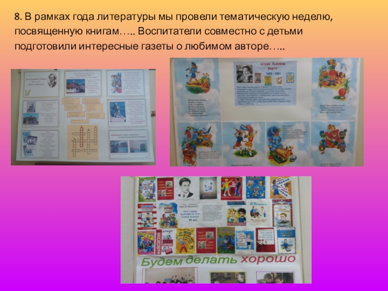 Слайд 348. В рамках года литературы мы провели тематическую неделю, посвященную книгам…..