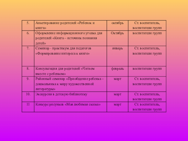 мы определили систему работы с детьми и родителями, разработали перспективный план и продолжаем его реализовывать.