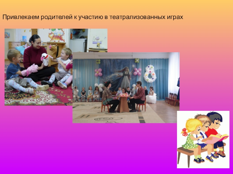 Слайд 45Привлекаем родителей к участию в театрализованных играх