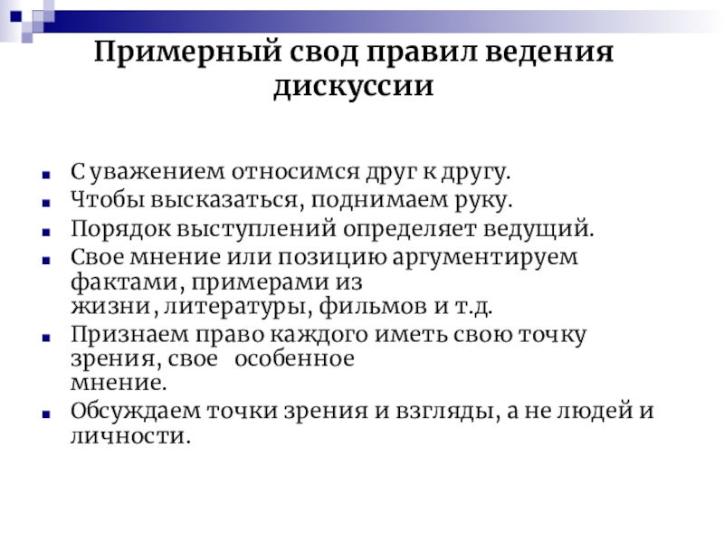 Примерный свод правил ведения дискуссии