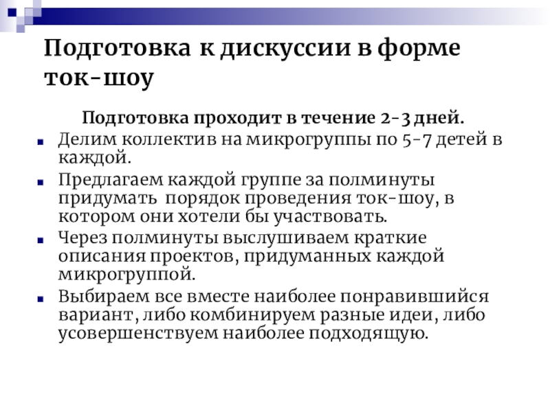 Слайд 12Подготовка к дискуссии в форме ток-шоу