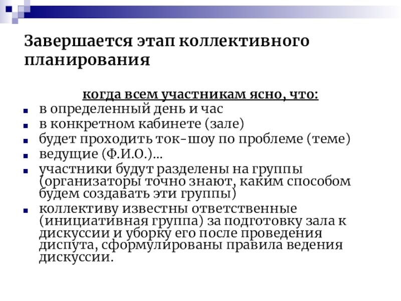 Слайд 14Завершается этап коллективного планирования