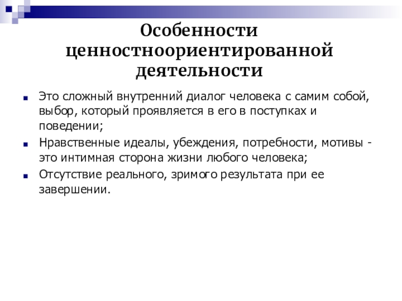Особенности ценностноориентированной деятельности
