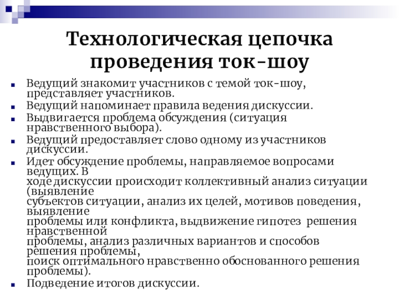 Слайд 16Технологическая цепочка проведения ток-шоу