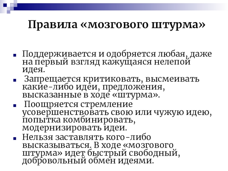 Слайд 13Правила «мозгового штурма»