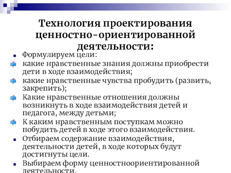 Технология проектирования ценностно-ориентированной деятельности: