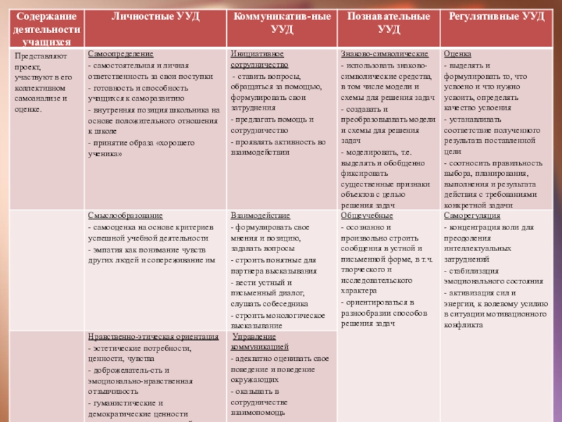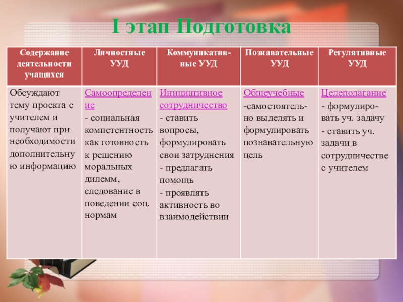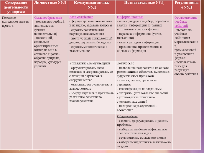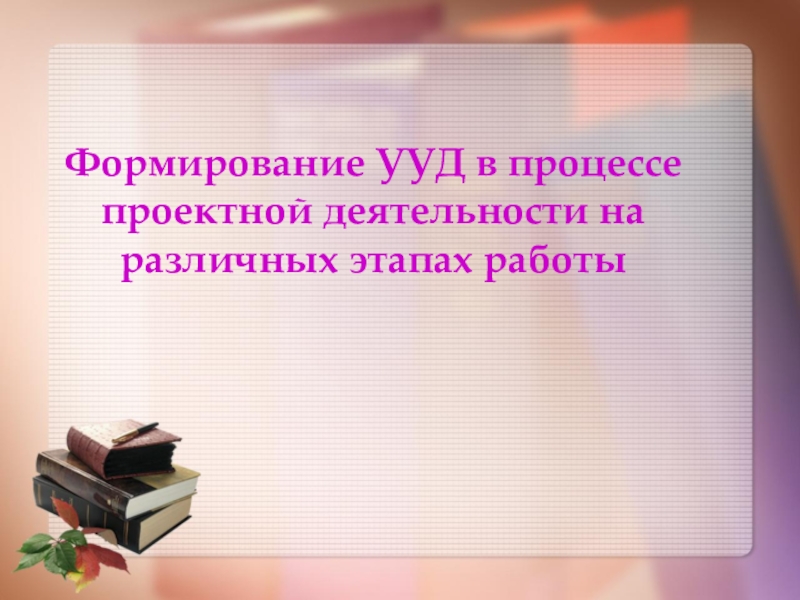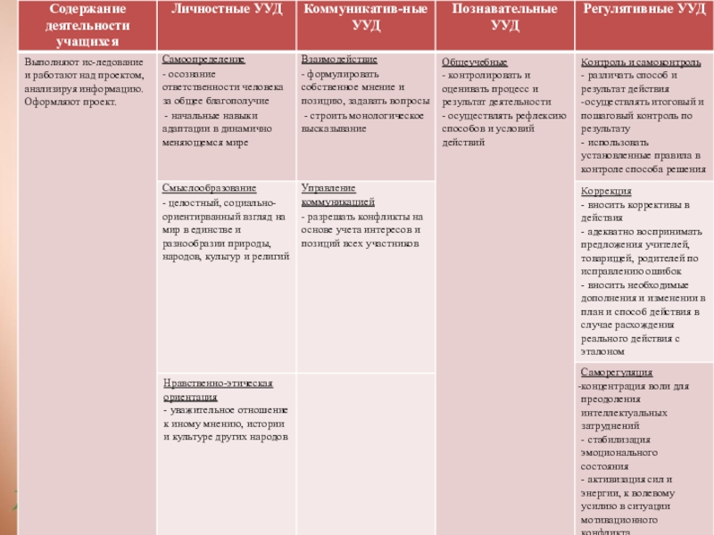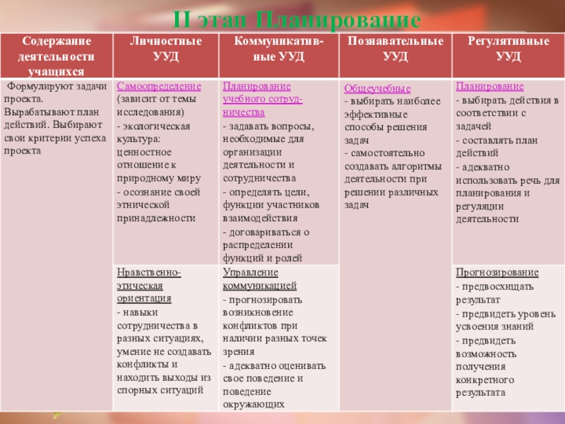 Слайд 8Формирование УУД в процессе проектной деятельности на различных этапах работы
