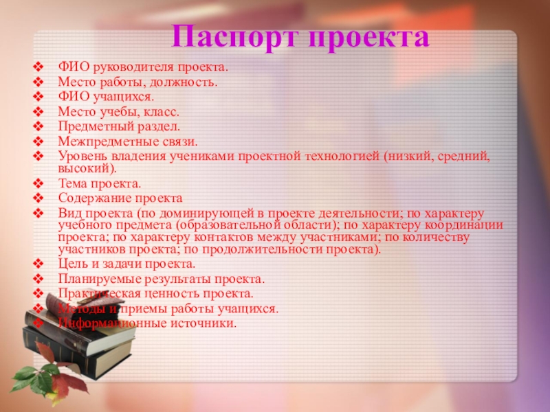 и т. п.), Оформление результатов проекта требует четкой, продуманной структуры в виде сценария праздника, плана сочинения, статьи, эссе, дизайна рубрик газеты, альбома, стенгазеты и т. п.