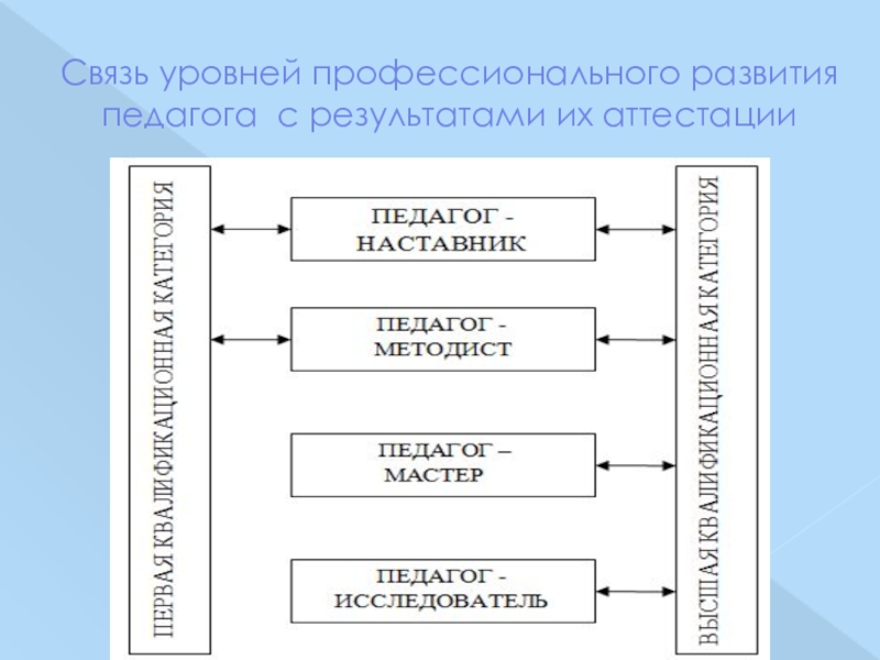 Слайд 13Связь уровней профессионального развития педагога с результатами их аттестации