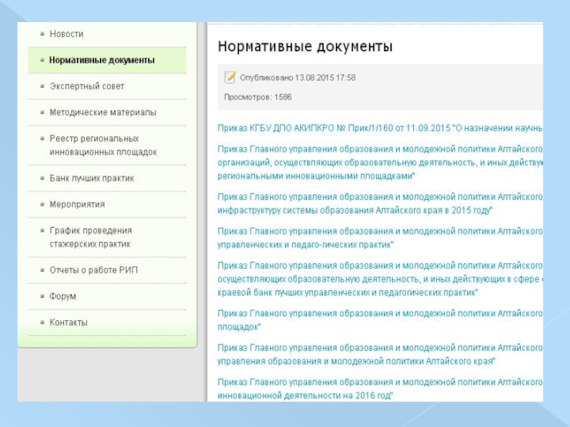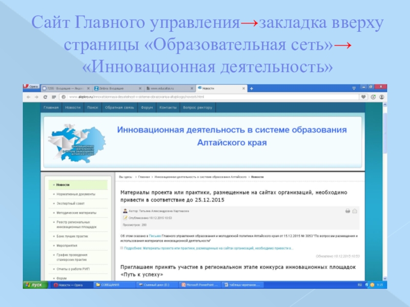 Слайд 25Сайт Главного управления→закладка вверху страницы «Образовательная сеть»→ «Инновационная деятельность»