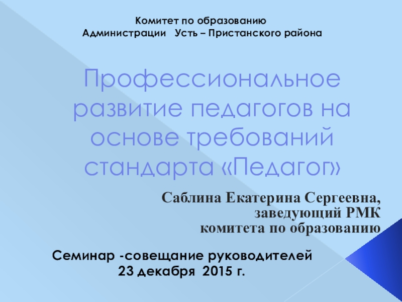 Слайд 1Профессиональное развитие педагогов на основе требований стандарта «Педагог»