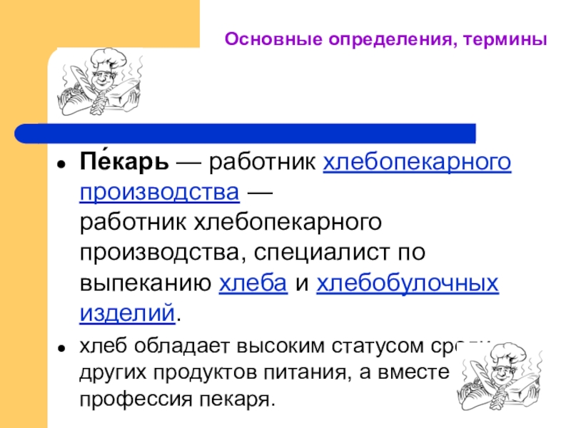 хлеб обладает высоким статусом среди других продуктов питания, а вместе с ним и профессия пекаря.