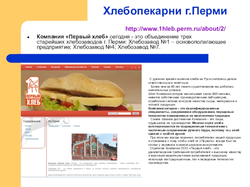 Компания «Первый хлеб» сегодня - это объединение трех старейших хлебозаводов г. Перми: Хлебозавод
