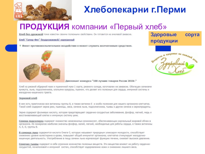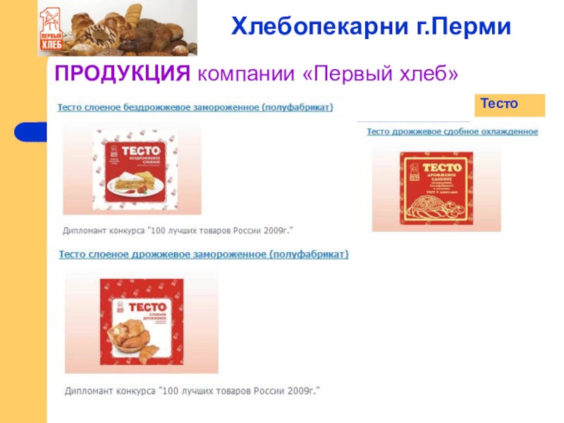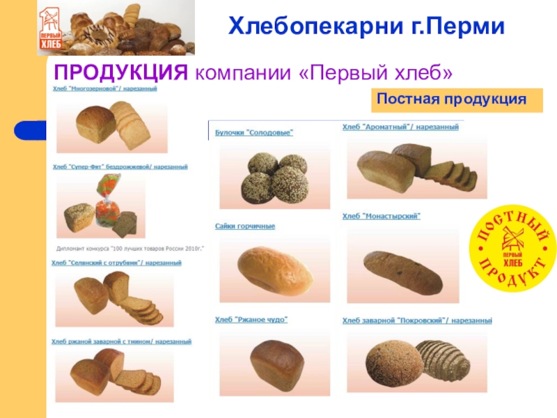 Слайд 10ПРОДУКЦИЯ компании «Первый хлеб»