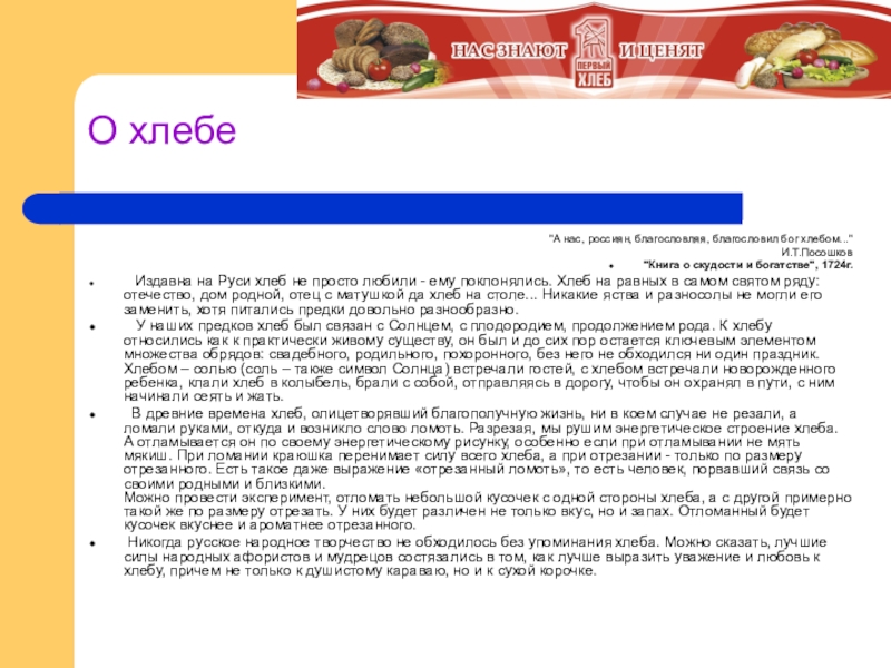 Слайд 26О хлебе