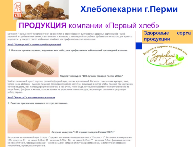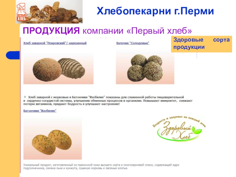 Слайд 8ПРОДУКЦИЯ компании «Первый хлеб»